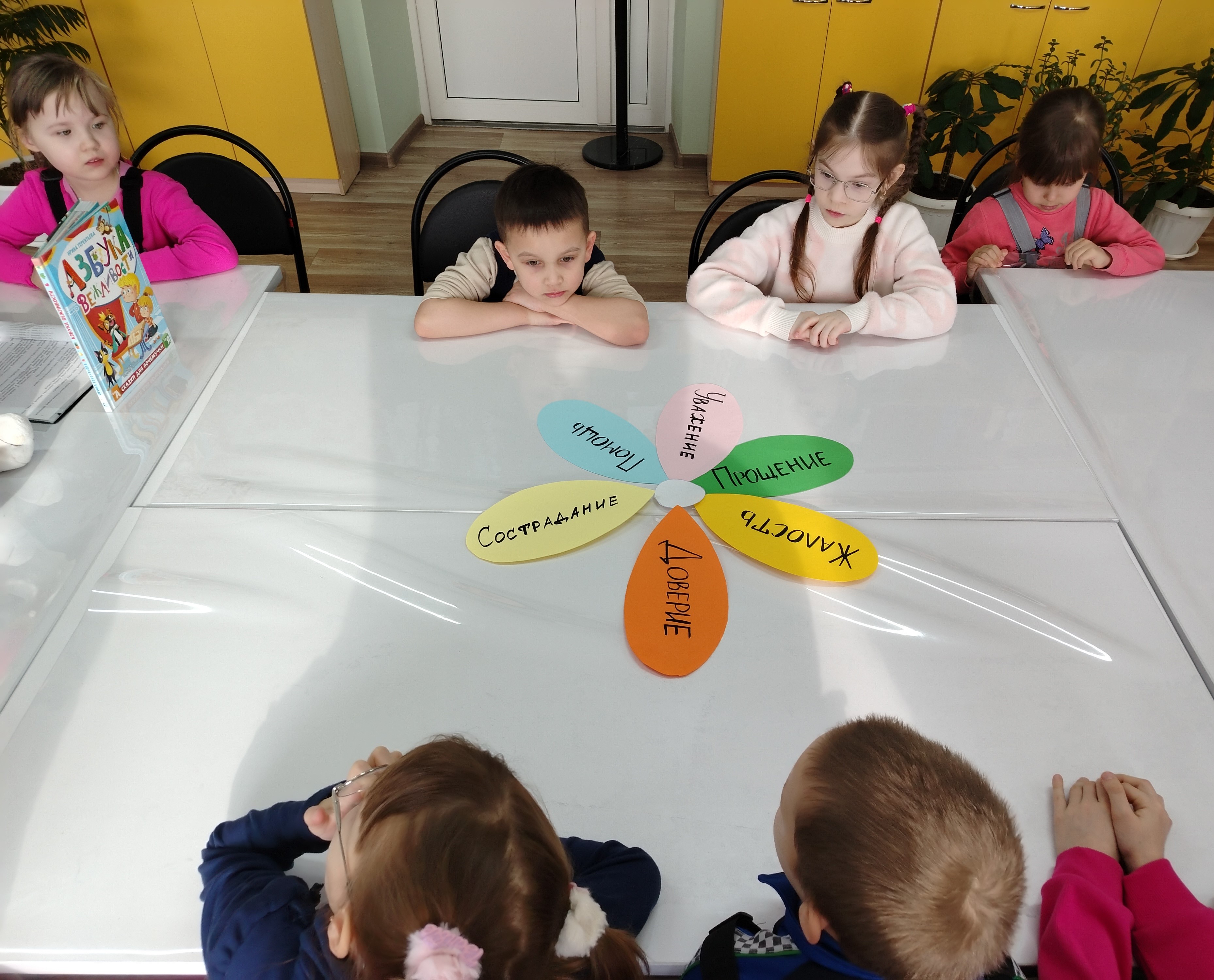 Каждый лепесток этого волшебного цветка символизировал важные качества: доброту, взаимопомощь, честность и умение делиться. Ребята с удовольствием прикрепляли лепестки, обсуждая, почему эти качества так важны для крепкой дружбы.